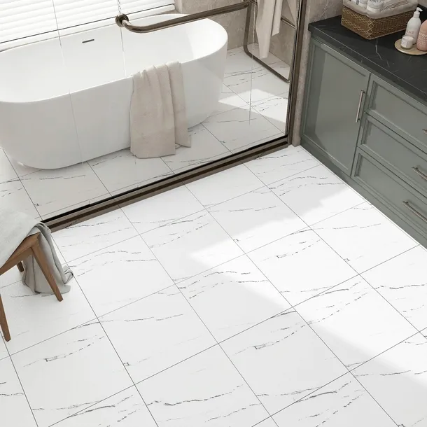 Samoprzylepne płytki podłogowe winylowe w kolorze marmur to praktyczna alternatywa dla tradycyjnych płytek ceramicznych i paneli. Wzór inspirowany naturalnym kamieniem nadaje przestrzeni elegancki, ponadczasowy wygląd, który pasuje zarówno do wnętrz nowoczesnych, jak i klasycznych.